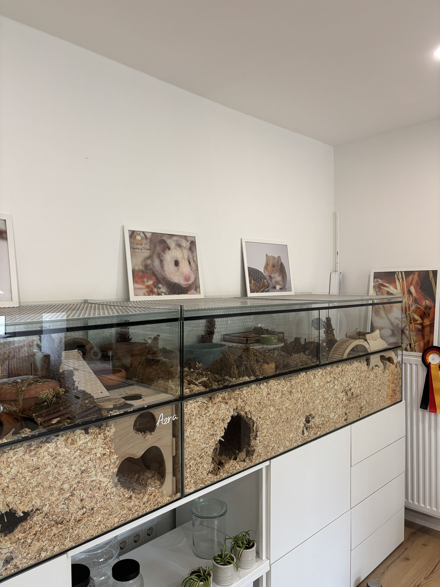 Bilder meiner Gehege, Einrichtungsvideos und weitere Einblicke gibt es auf meiner Instagramseite und in den dort gespeicherten Highlights! (hamsters.of.nature)